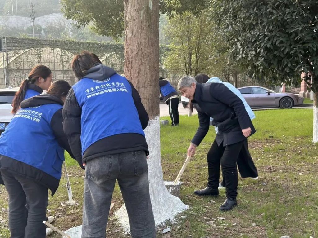刷白涂浆护佳树 拖枝剪叶净校园 | 智能制造与机器人学院开展“校园护绿,树木涂白”劳动教育主题实践活动