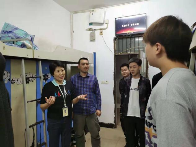 5月5日晚,汽车工程学院院长宁萍、党总支书记柳良江、团总支书记曾建平一同深入走访31栋学生宿舍,了解学生节后返校情况。