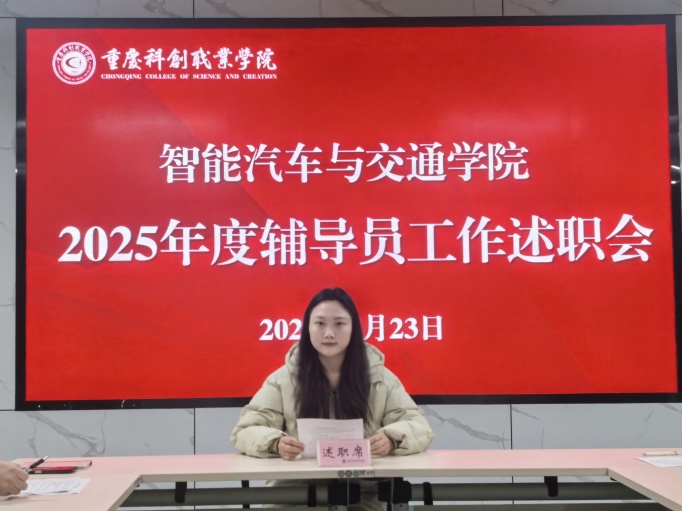 会上,各辅导员依次上台述职,围绕2025年度履职情况,重点从三个方面展开汇报:一是总结主要完成的工作,包括在安全稳定、学风建设、目标达成、科研成果等方面取得的实绩;二是剖析存在的主要问题,深入反思在专升本升学、学风引导、个人能力等方面存在的短板;三是阐述2026年工作打算,明确在班风学风建设、产教融合推动、自身发展提升等方面的目标与举措。述职内容详实、态度认真,既展示了成绩,也直面了不足,体现了学院辅导员队伍履职尽责、积极进取的精神风貌。