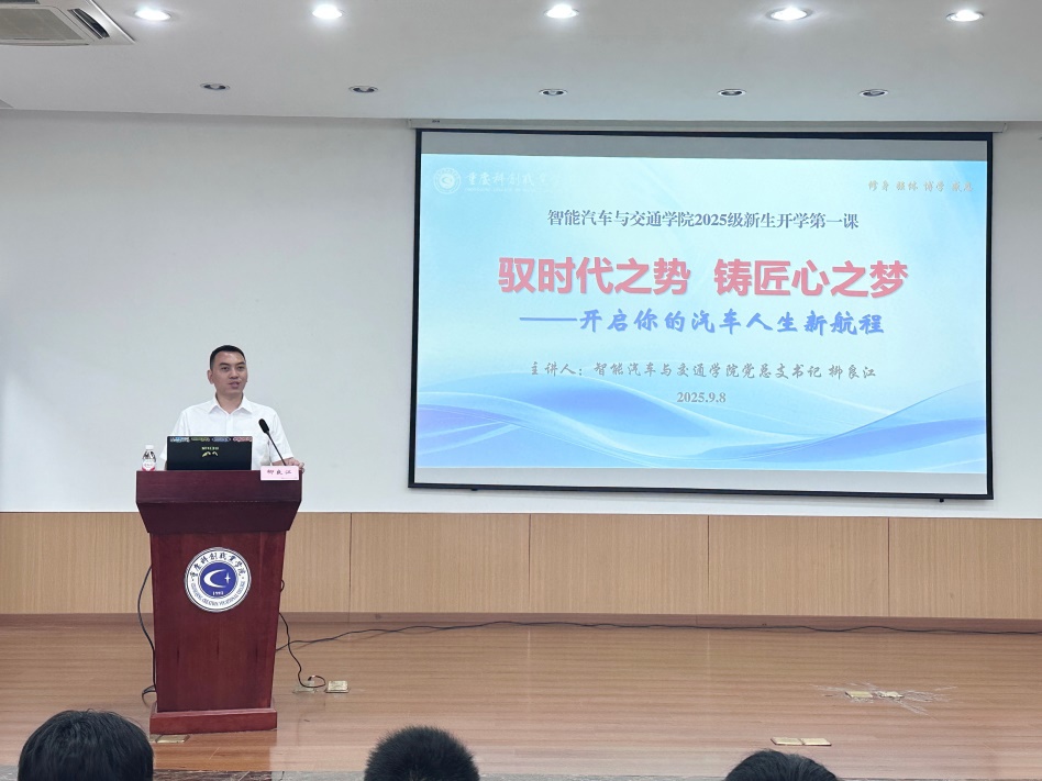 9月8日上午,智能汽车与交通学院2025级新生齐聚理工楼807学术报告厅,聆听由学院党总支书记柳良江主讲的“开学第一课”。本次讲座以“驭时代之势 铸匠心之梦”为主题,为新生开启大学生涯指明方向、注入动力。