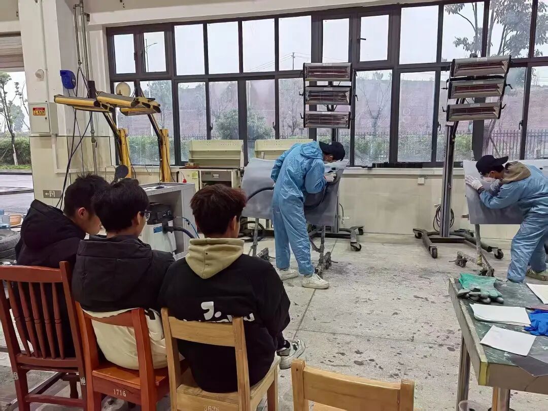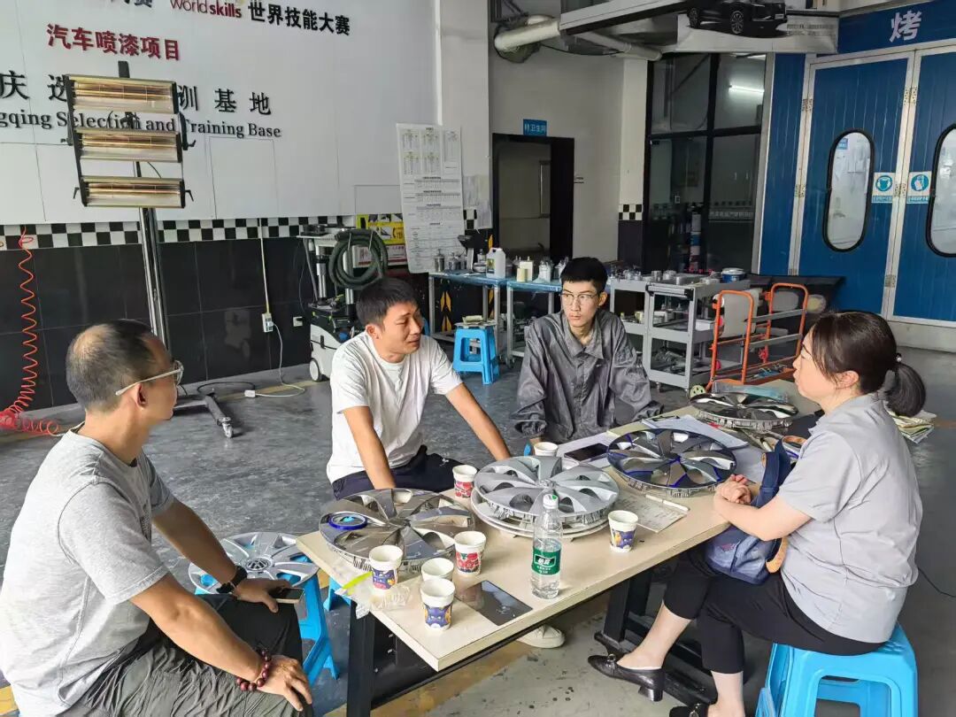 这份沉甸甸的荣誉,源于日复一日的艰苦磨砺。备赛期间,蒋水海坚持每天进行超过八小时的高强度实操训练,反复打磨喷枪角度、走枪速度和喷涂距离,力求每一道涂层的厚度与光泽度都分毫不差。盛夏的实训基地温度极高,他常常在闷热的喷漆房内一待就是数小时,汗水浸透工装,却从未松懈。夜晚,他还会对照评分细则复盘白天的训练作品,逐项分析不足,并整理出详细的训练笔记。