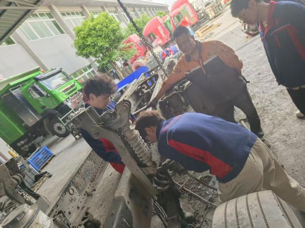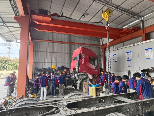 2024级汽车检测与维修技术专业学生全程参与重型卡车驾驶室翻新、底盘改装、特种车制造及整车装配等核心工艺。重点开展底盘系统拆装实训,涵盖驾驶室、悬挂、制动、管路线束及轮胎等关键部件拆卸与安装,熟练运用风炮、行车等专业工具,系统掌握拆装流程与安全规范。