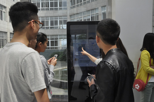 工作人员讲解电子阅览器微信扫描方法