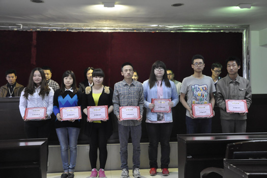 策划部副部长徐小梅作了广播站2013至2014学年度的工作总结,宣传部部长肖虎宣读了表彰决定和受表彰的学生名单。随后,参会领导分别向获得优秀播音员、优秀编辑、优秀组长和鼓励奖的学生颁奖。