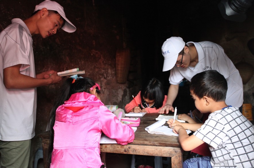 随后,志愿者们还带来了精彩的文艺节目,和小朋友一起联欢做游戏。时间过得飞快,转眼就是六点了。因为不能给留守儿童家里增加负担,志愿者们谢绝了奶奶的再三挽留,结束志愿服务要返回学校了。小朋友们依依不舍地把他们一直送到村口的马路上。