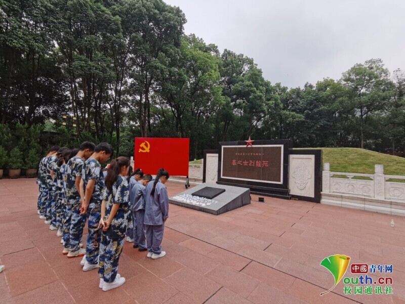 图为集体成员在烈士墓默哀。中国青年网通讯员 黄胜峰 摄