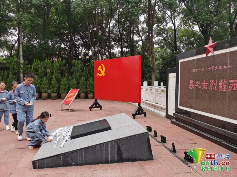 图为青少年儿童为英烈献上亲手折的小白花。中国青年网通讯员 黄胜峰 摄