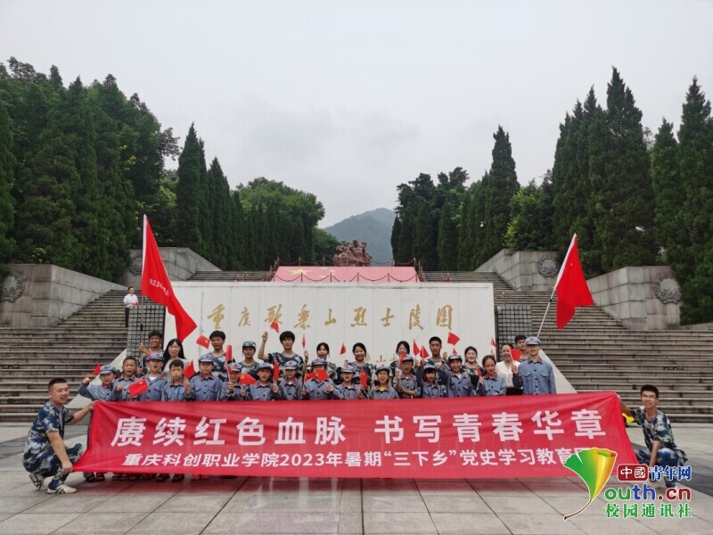 中国青年网重庆7月15日电(通讯员 赵敏 黄胜峰)2023年7月5日,重庆科创职业学院“红色领航”党史学习教育团带领社区青少年儿童一同走进重庆歌乐山烈士陵园、白公馆等红色基地参观学习,把重庆特色的“红岩魂”精神作为党史学习的生动教材,激励广大青少年儿童用实际行动追寻英雄足迹,传承红色基因!