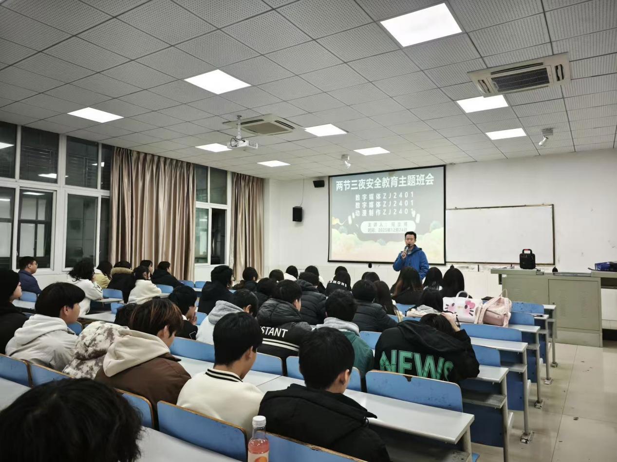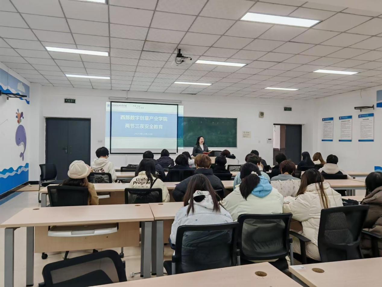 筑牢安全防线,守护校园平安。近日,西部数字创意产业学院正式启动“两节三夜”安全教育系列活动。各辅导员深入教室,面向全体学生开展主题班会,通过案例讲解、知识普及等方式,着力增强学生安全防护能力,营造更有序、更安心的校园环境。
