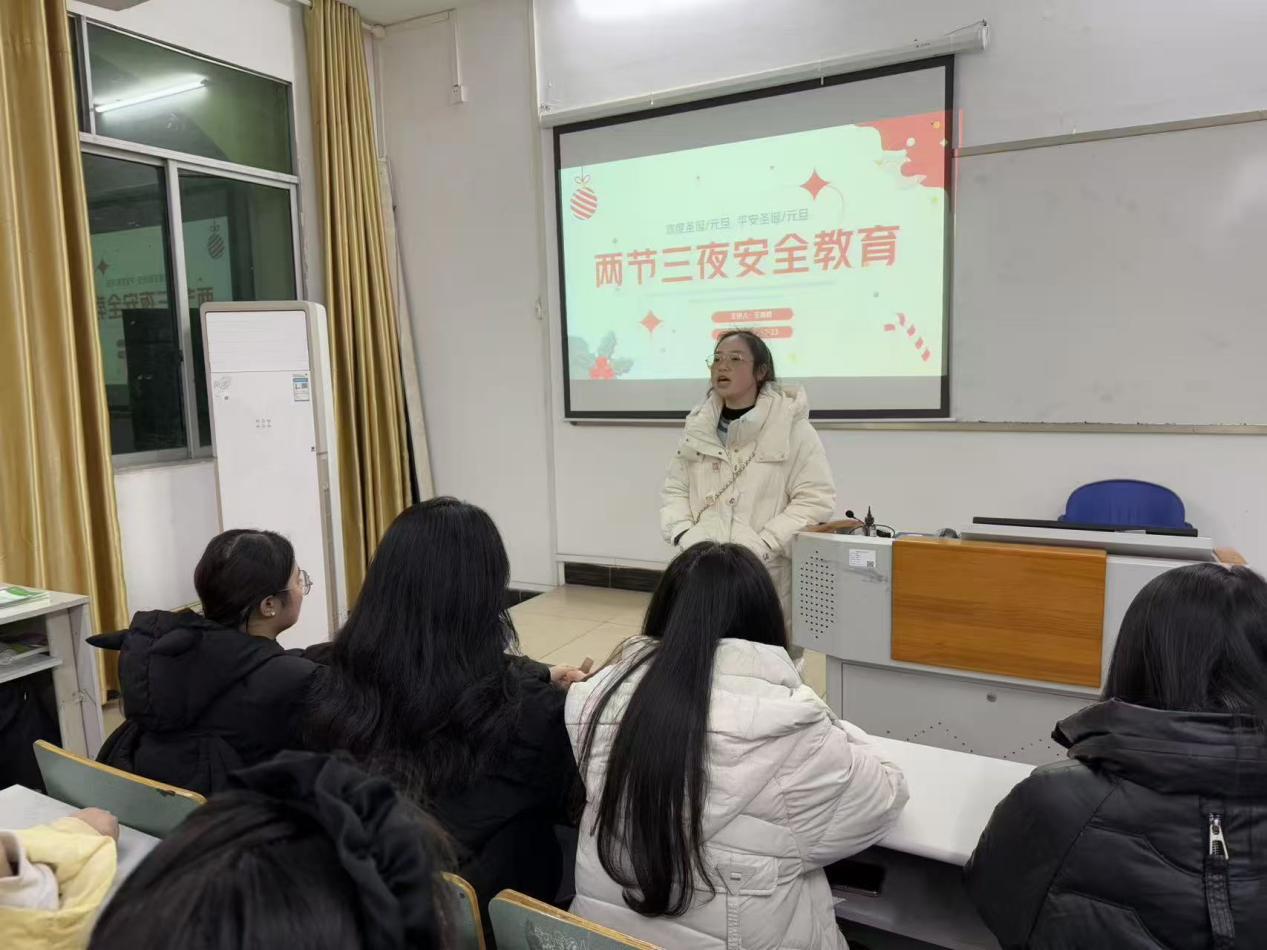 班会上,近期发生的校园安全事件以视频、图片等形式重现,让同学们深受触动。围绕“两节三夜”的特殊节点,辅导员们展开了实用指南: