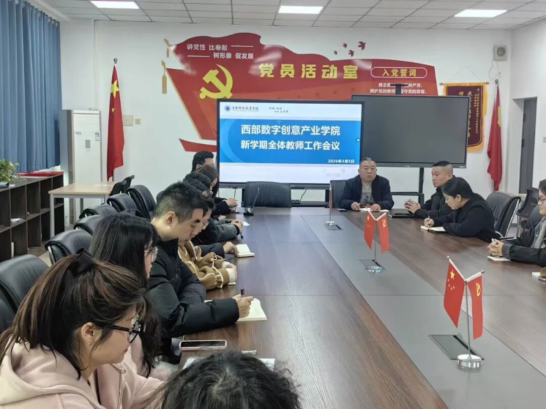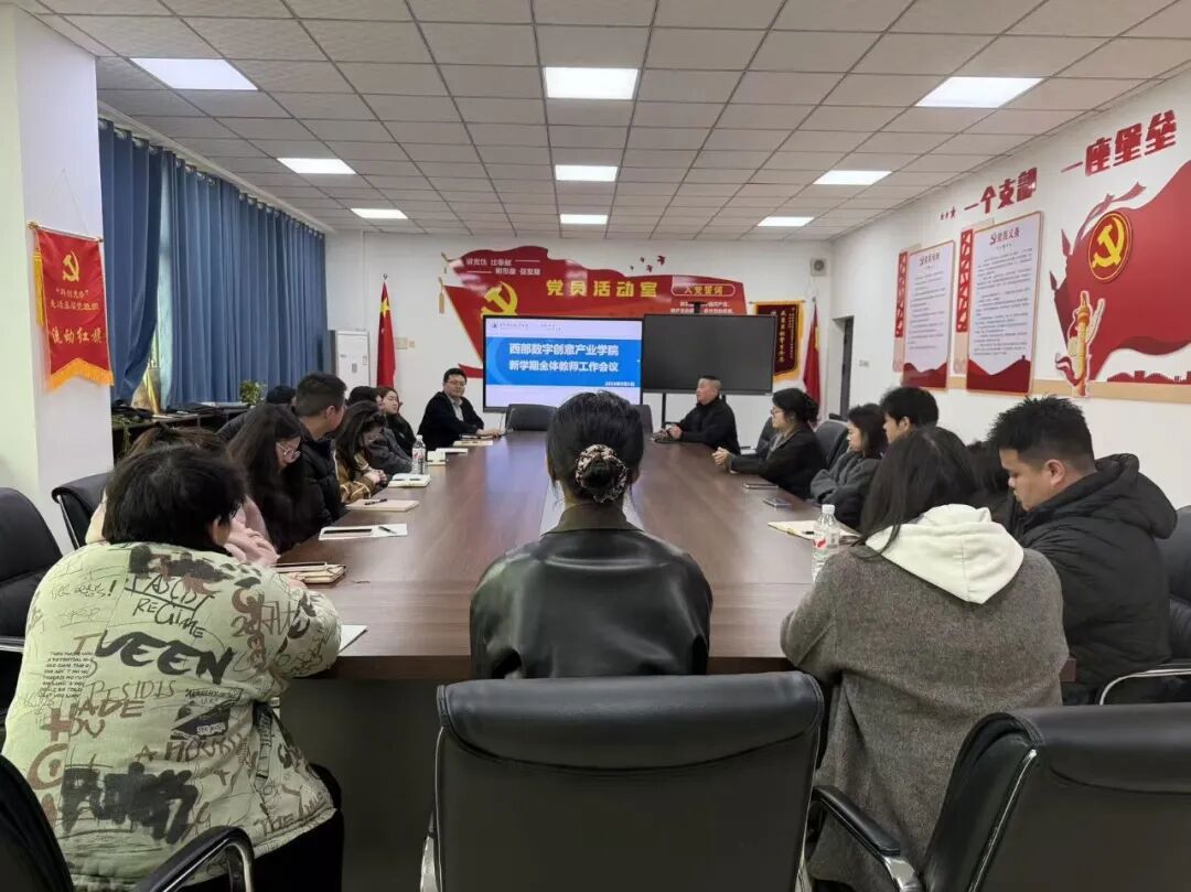 为统筹部署新学期教学工作,明确工作任务与要求,凝聚育人共识,3月5日,西部数字创意产业学院在精益楼405召开2025-2026学年第2学期全体教师工作会。学院院长杜德银、副院长张陵,教研室主任杨成斌、副主任赵青青出席会议,全体教师参会,会议围绕开学筹备、教学重点、教师能力提升等核心工作作出全面安排。