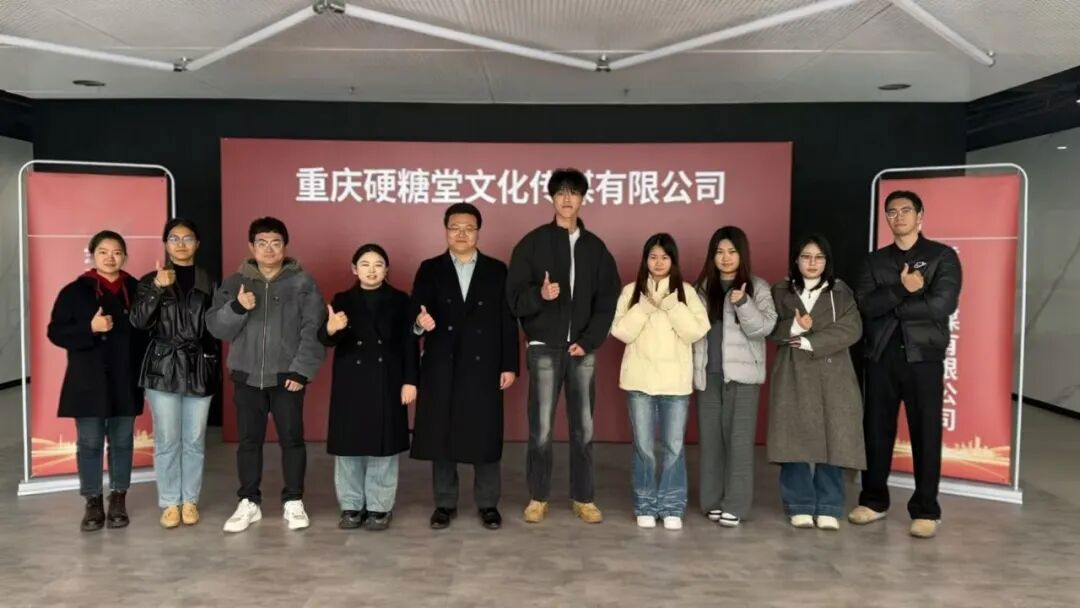 随后,调研组来到重庆硬糖堂文化传媒有限公司,该公司坐落于大数据产业园,专注于AI生图、沙雕动画后期制作及AI漫剧等前沿领域,拥有专业的动态漫导演团队 。老师们详细考察了企业的工作环境与项目流程,并与在此实习的学生进行座谈,详细了解他们的工作内容、学习收获与生活情况,勉励大家珍惜实践机会,提升专业技能。