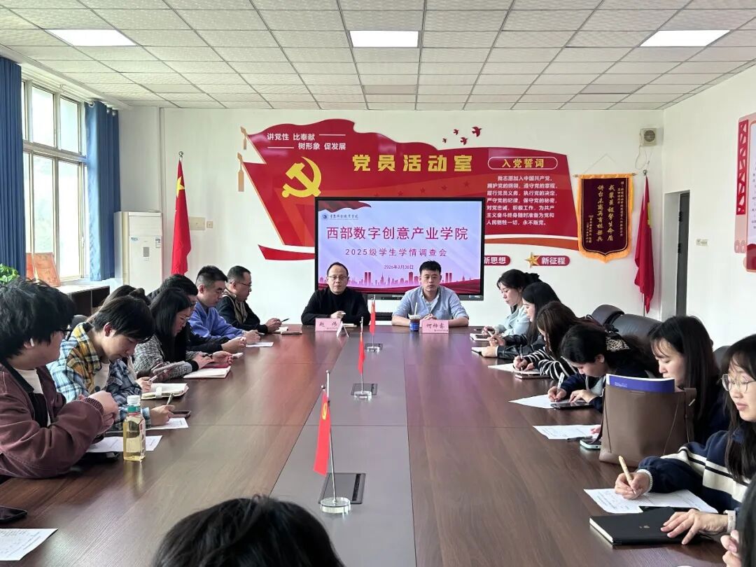 为掌握2025级高职学生学习动态,深化教学改革,提升育人质量,营造优良学风,3月30日,西部数字创意产业学院在精益楼405召开2025级高职学生学情调查会。学院党支部书记兼副院长赵伟、副院长王鹏威、实训中心主任曹明颖、团总支书记赵敏、团总支指导老师钟小路及各专业课教师代表参会,与各班学生代表面对面交流。
