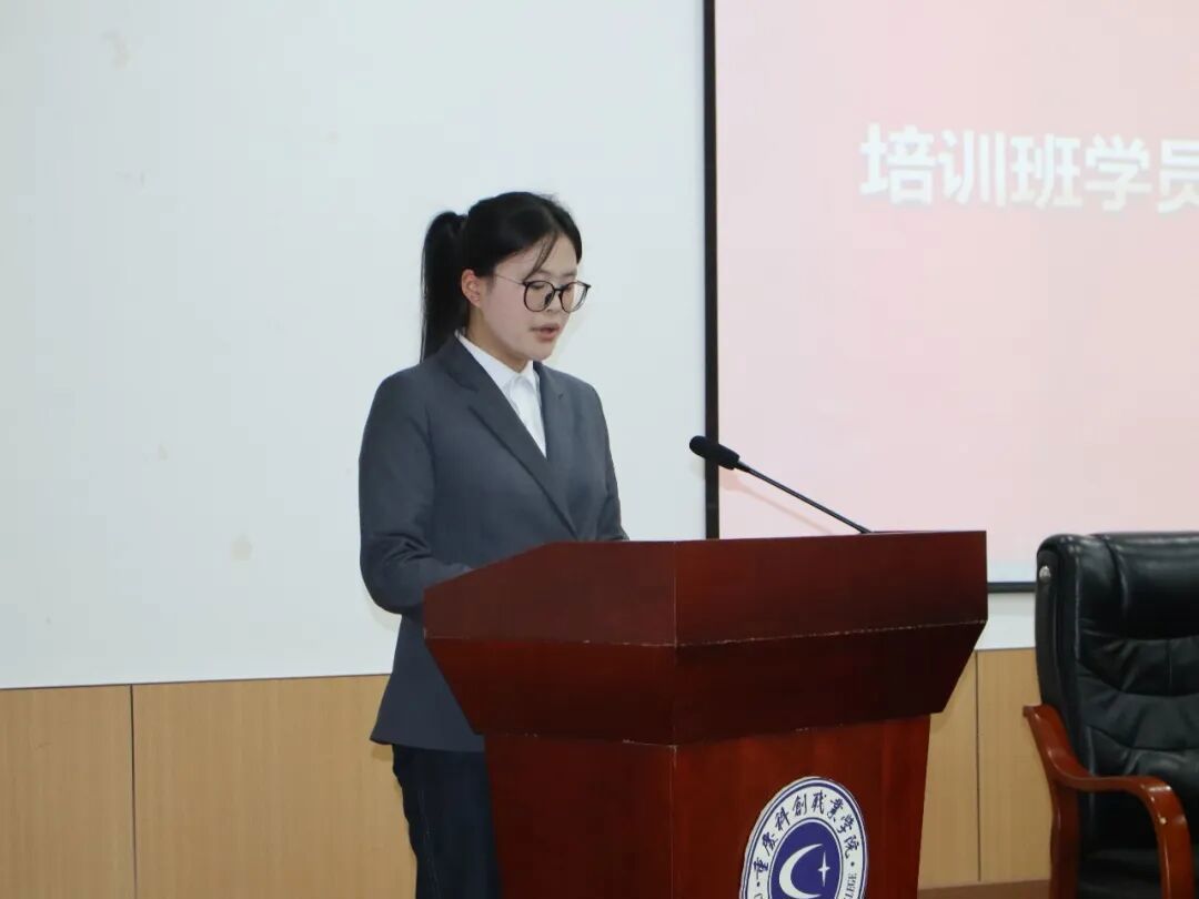 学员代表潘美林发言,代表全体学员承诺将严守纪律、勤学善思,把培训所学转化为工作实效,以实干担当彰显团学骨干的青春风采。