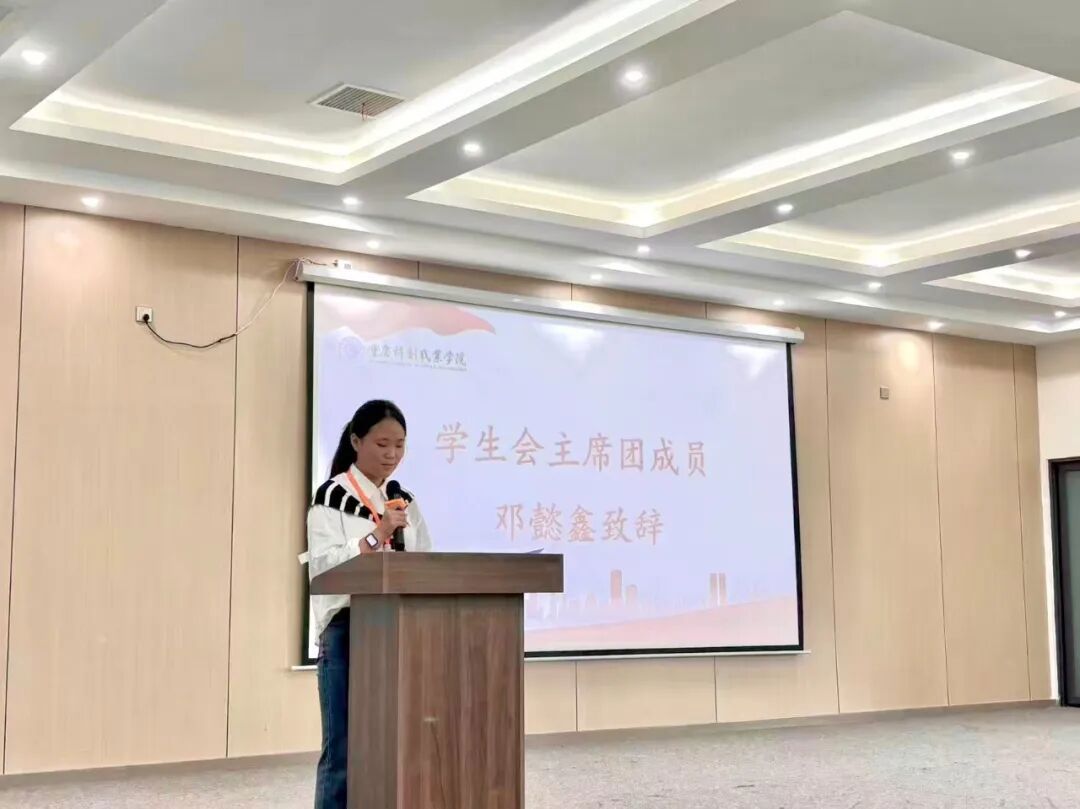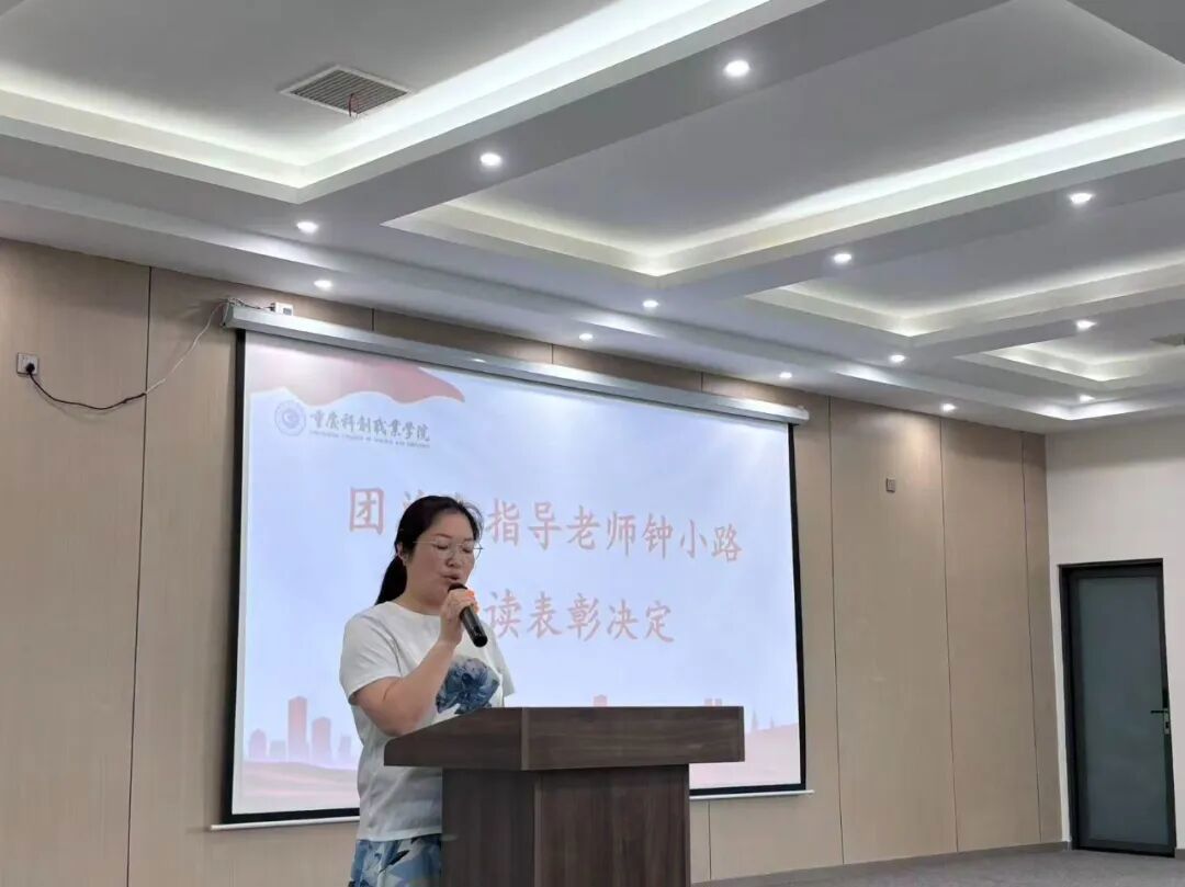 团总支指导老师钟小路宣读表彰决议,以对在“2025年新学期迎新工作”中表现突出的志愿者进行表彰。