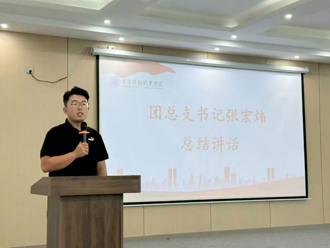 最后,团总支书记张宏炜在总结讲话中充分肯定了学生会在迎新工作中展现的协作精神和奉献意识,并对全体成员提出三点期望:一是“以榜样为镜”,主动向优秀骨干学习,不断提升综合能力;二是“以服务为魂”,始终牢记服务同学的宗旨,积极回应和解决同学们的切实需求;三是“以奋斗为笔”,以饱满热情投身校园建设,为学院发展贡献青春力量。