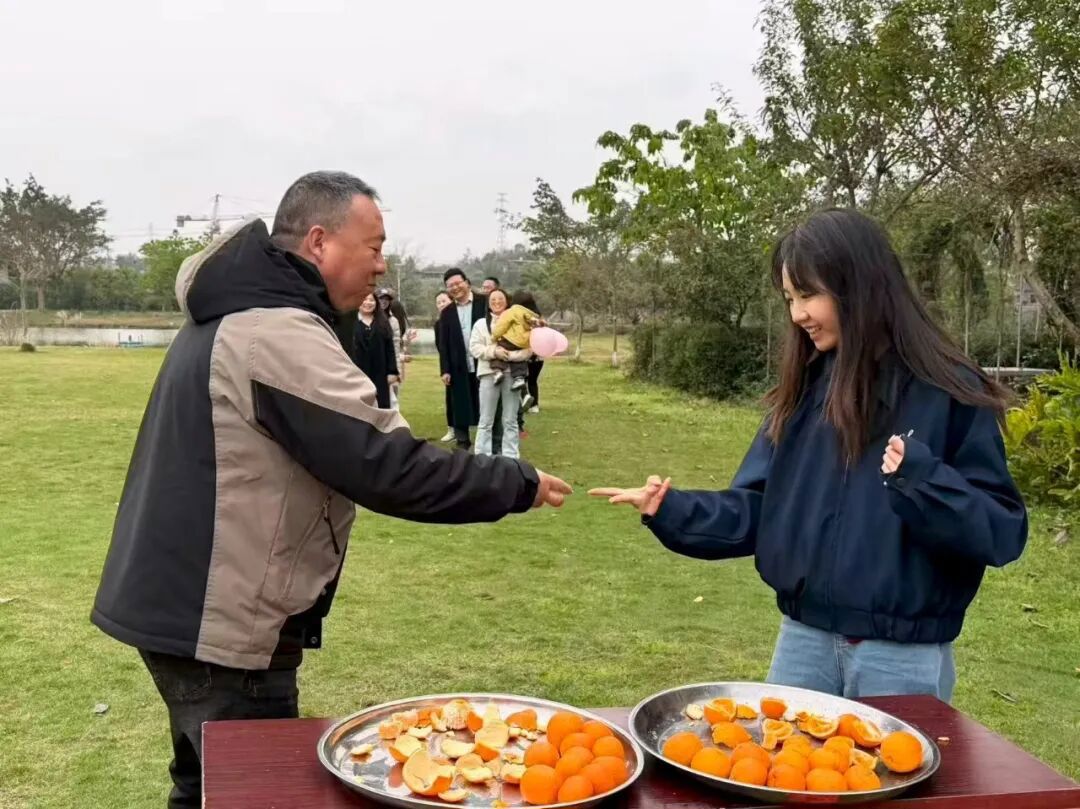 橘林深处暖意融融,女教师们结伴而行,穿梭在硕果累累的橘林间。金黄的橘子在春日暖阳下熠熠生辉,大家手持果篮,精心采摘,一边劳作一边畅谈,欢声笑语驱散了工作的疲惫,果香与笑意交织成温馨美好的画面。