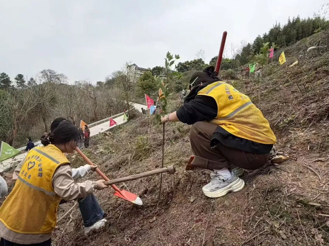 3月12日上午,数创团学骨干们前往双石镇,开展“学雷锋 添新绿”义务植树主题活动。