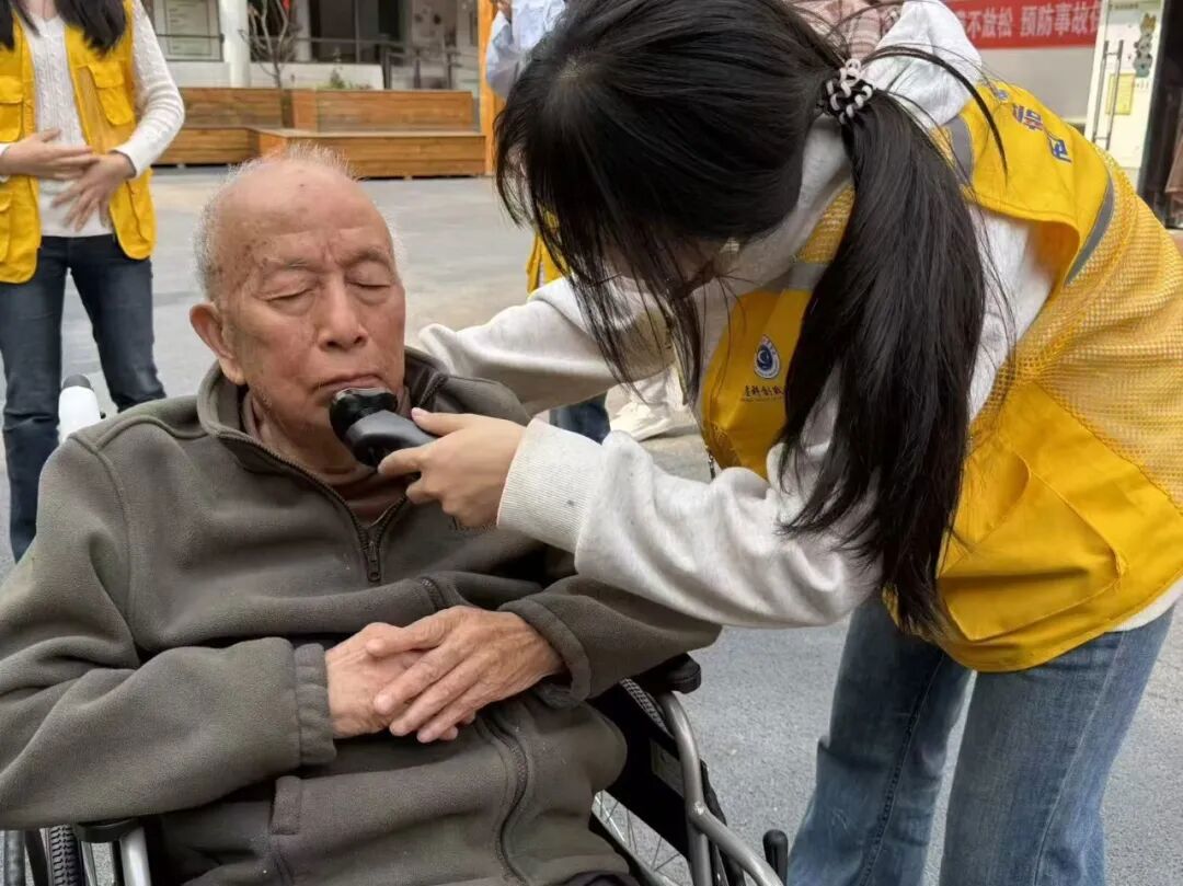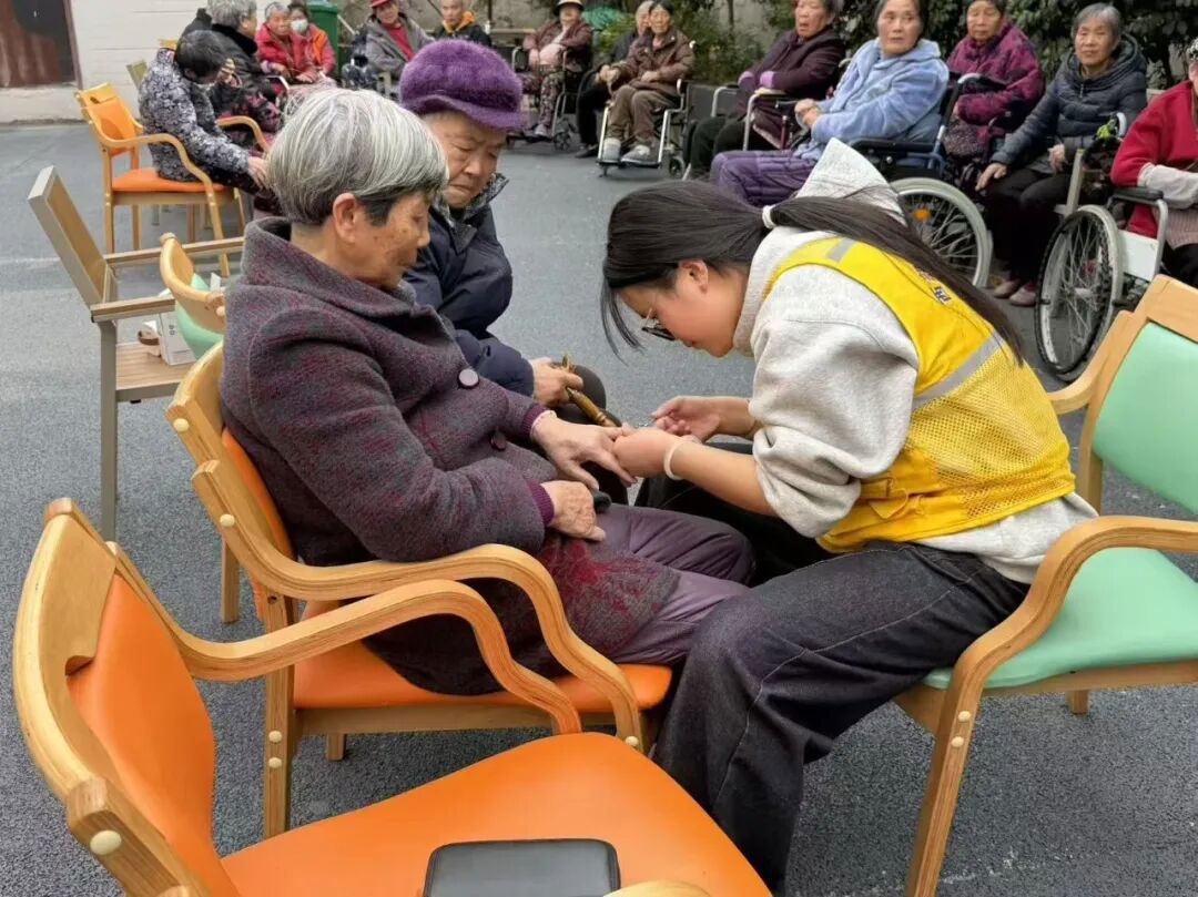 植树结束后,志愿者们俯身为爷爷奶奶修剪指甲,动作轻柔细致。一边修剪,一边与长者拉家常,倾听他们的青春故事与人生感悟。现场暖意融融、其乐融融。
