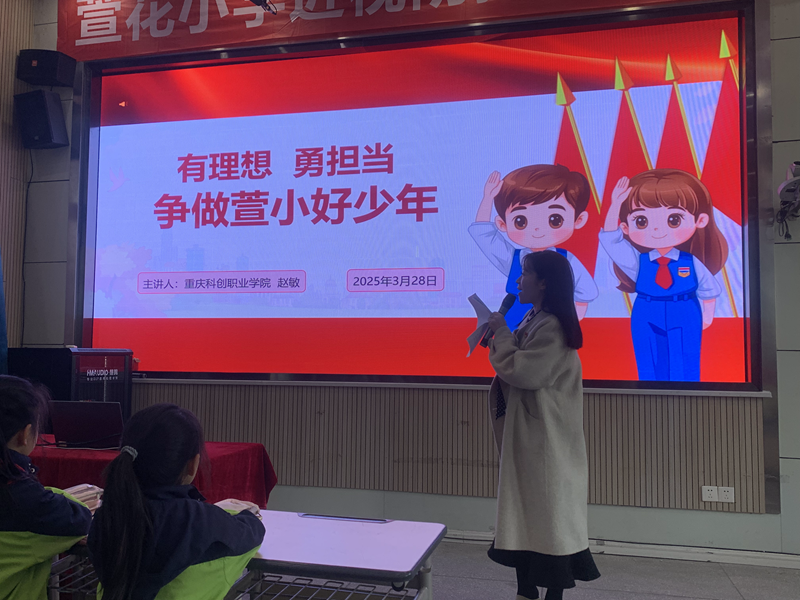 4月1日,我校智能建造与设计学院“红匠先锋”队走进永川萱花小学,为学生们带来了一堂别开生面的大思政教育课。学院团总支书记赵敏以“理想与担当”为主题,通过生动的案例、互动问答和集体朗诵等形式,深入浅出地传递了社会主义核心价值观,引导学生们树立远大理想,培养家国情怀。