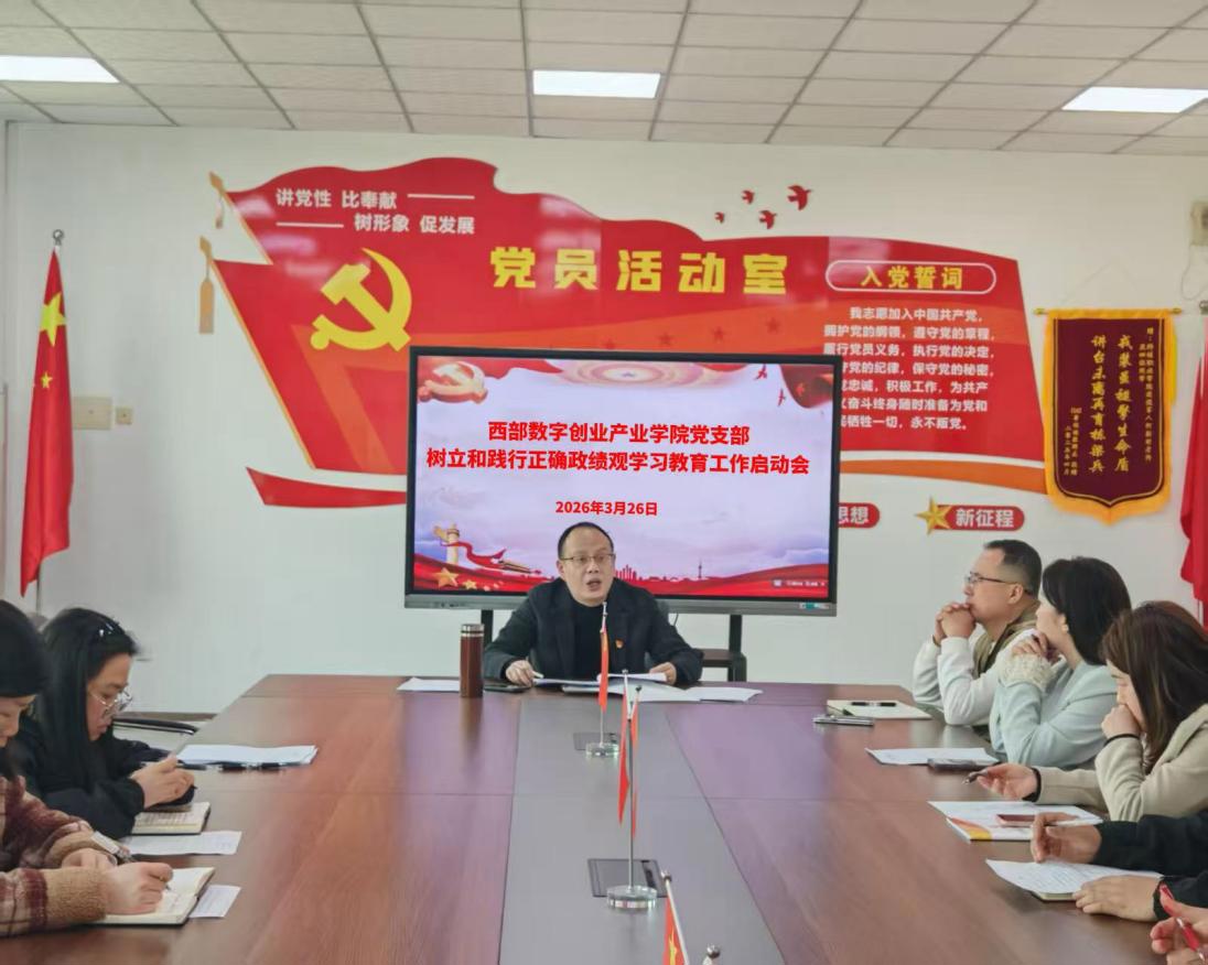 为深入学习贯彻习近平总书记关于树立和践行正确政绩观的重要论述,落实学校党委相关工作部署,3月26日,西部数字创意产业学院党支部在精益楼405召开树立和践行正确政绩观学习教育工作启动会。会议由党支部书记赵伟主持,支部全体党员、干部参加会议。