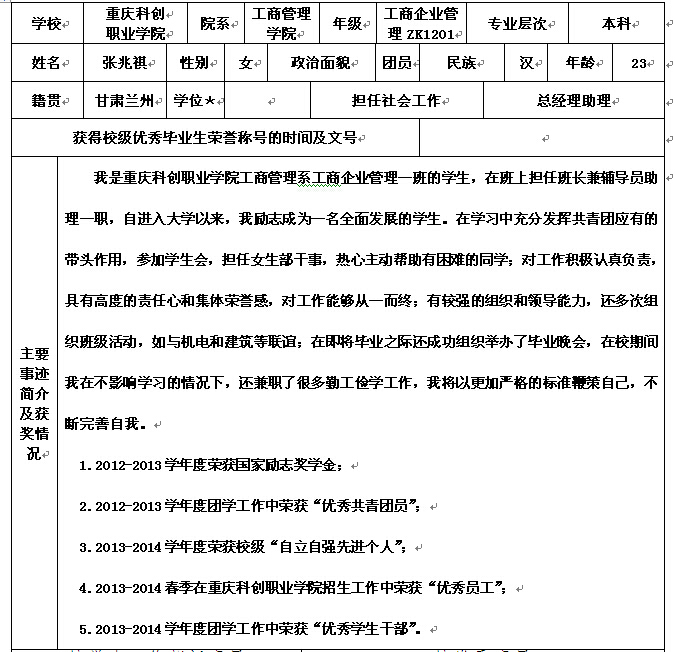 重庆市2015年优秀毕业生——张兆祺
