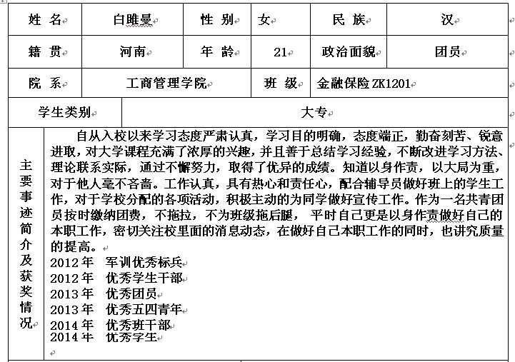 重庆科创职业学院2015年优秀毕业生——白雎曼