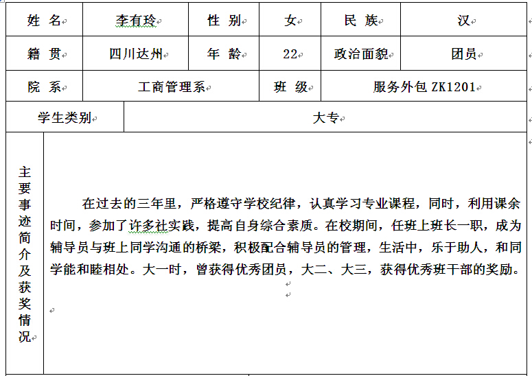 重庆科创职业学院2015年优秀毕业生——李有玲