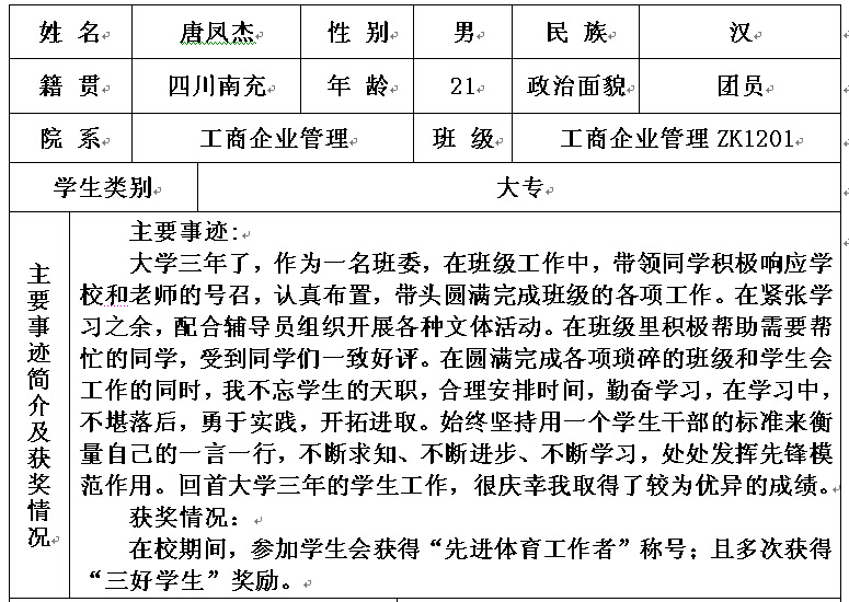 重庆科创职业学院2015年优秀毕业生——唐凤杰