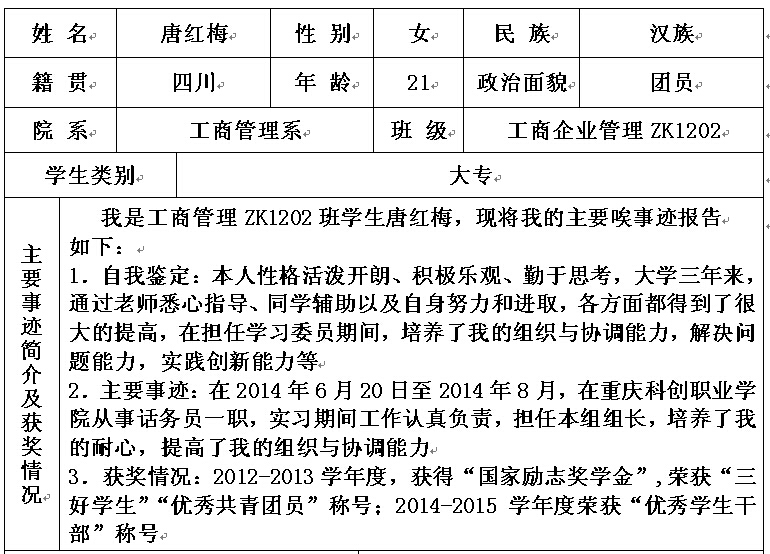 重庆科创职业学院2015年优秀毕业生——唐红梅