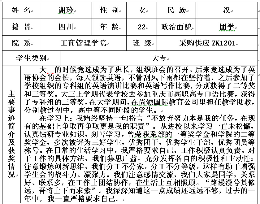 重庆科创职业学院2015年优秀毕业生——谢玲