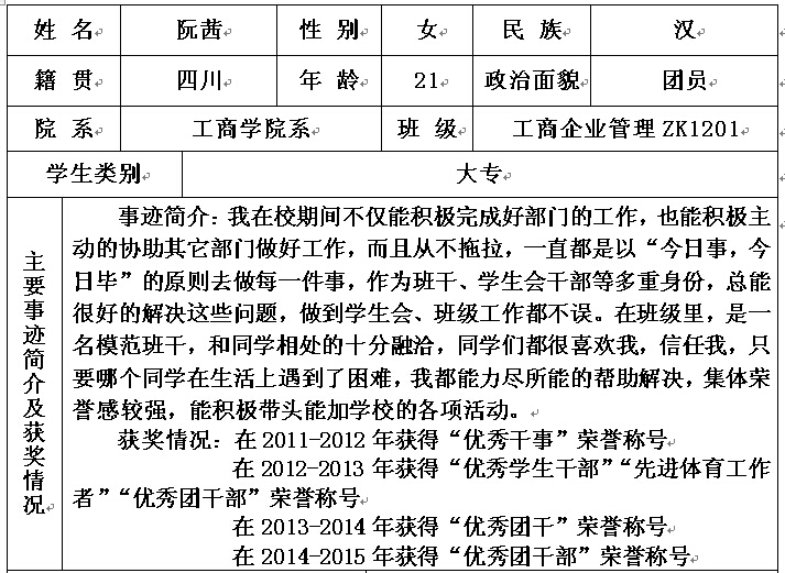重庆科创职业学院2015年优秀毕业生——阮茜