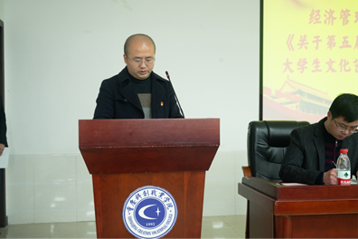 经济管理学院团总支书记郑东宣读《关于第五届经济管理学院团总支、学生会、大学生文化艺术团各部门负责人的任职通知》