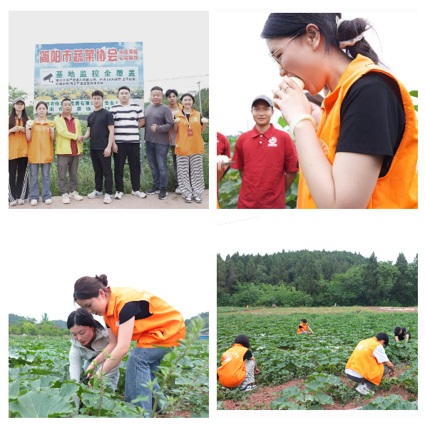 实践团队来到四川省简阳市镇金镇河坝村"与贝同行"项目基地,实地考察以贝贝南瓜为核心的特色农业产业。该项目采用"公司+村集体+农户"合作模式,通过订单农业、标准化种植和电商销售,带动当地农户增收。团队成员深入种植基地,了解智能温室调控、水肥一体化等现代农业技术应用,并与项目负责人探讨如何结合智能建造技术优化农业设施,提升产业效能。