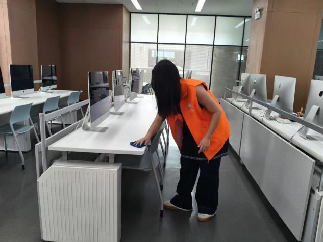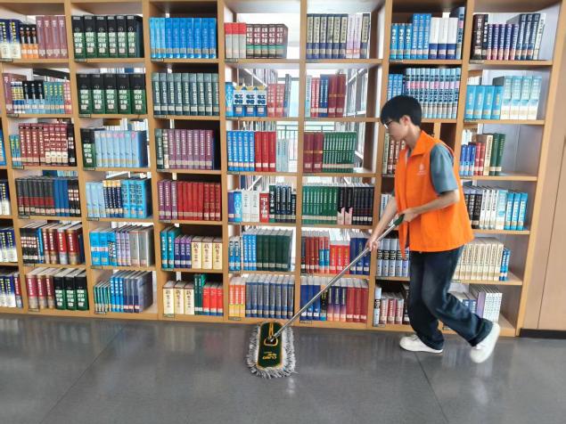 活动当天,志愿者们精神饱满地齐聚图书馆。在认真聆听图书馆老师的讲解与分工后,迅速分组行动。图书整理组化身“书籍守护者”,穿梭于书架之间,仔细核对每一本书的编号,将错放、散落的图书归位,并为破损的书籍更换封皮;环境清洁组手持抹布、扫帚、消毒喷雾等工具,对阅览区桌椅、窗台、地面进行全面清扫与消毒;电子设备维护组则专注于自助借还机、查询终端等设备的除尘与调试,保障设备正常运行。