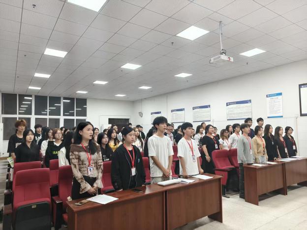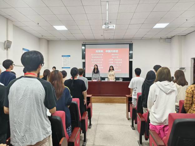 大会在庄严的《中国共产主义青年团团歌》中拉开序幕。全体成员肃立齐唱,激昂的旋律展现了学生骨干昂扬向上的精神风貌与坚定的理想信念。