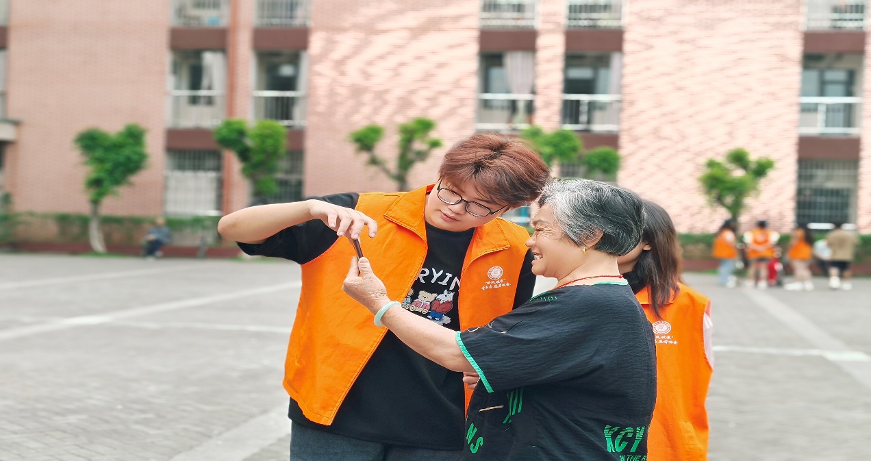 除了精彩的表演志愿者们还与老人们进行了亲切的交流和互动。他们耐心倾听老人们的故事,分享自己的学习和生活经历,为老人们带去了欢笑和温暖。整个活动现场弥漫着温馨和谐的气氛,老人们的脸上洋溢着幸福的笑容。