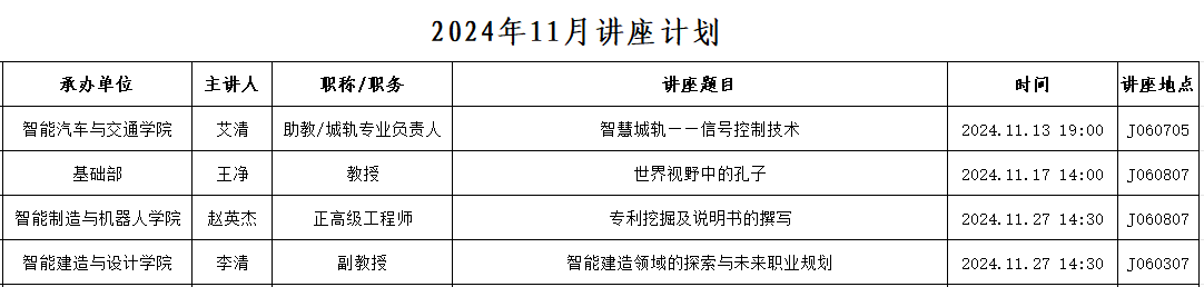 2024年11月讲座计划