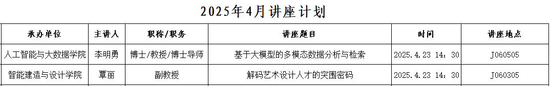 2025年4月讲座计划