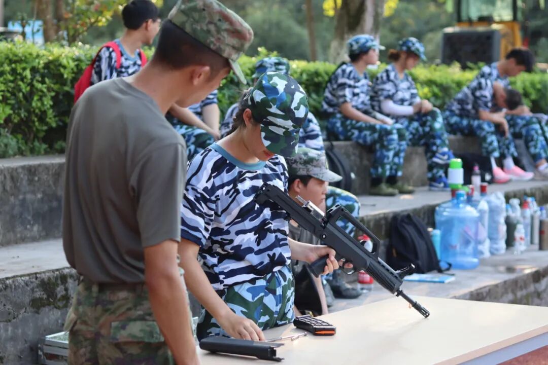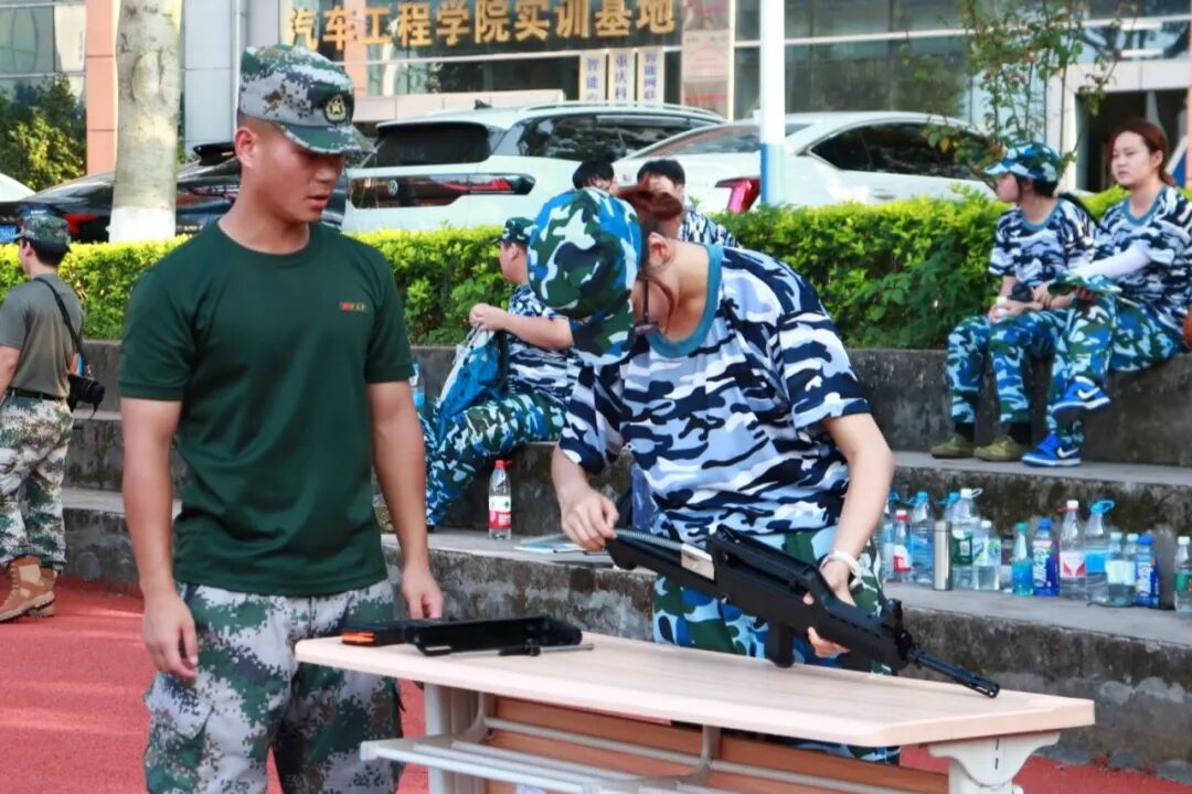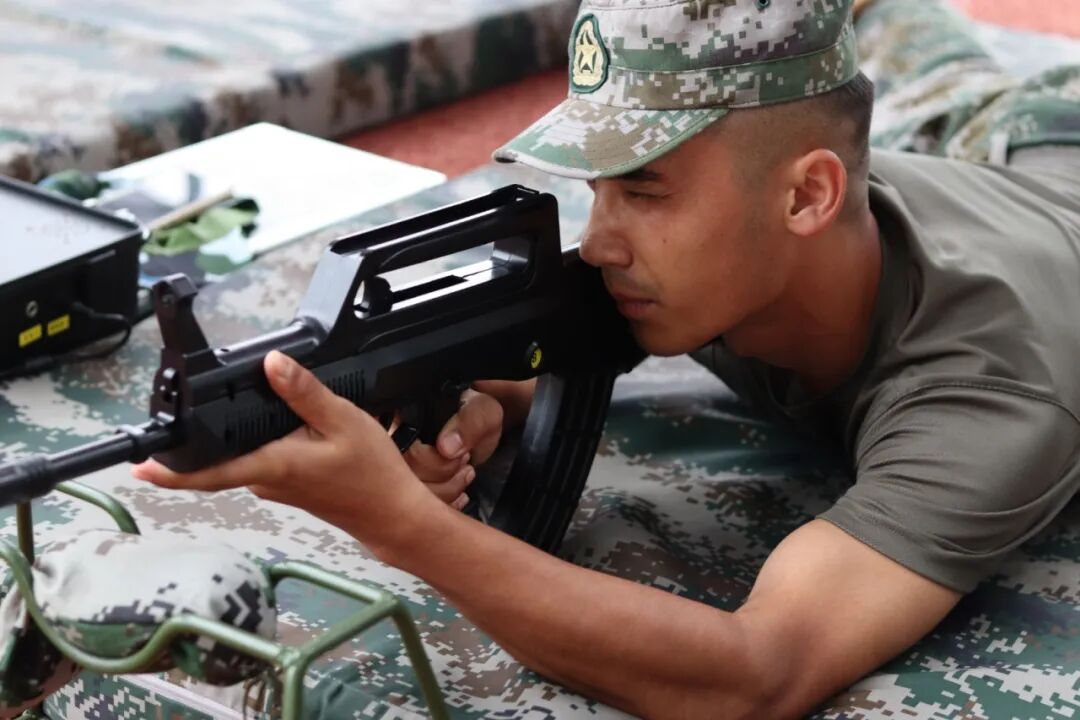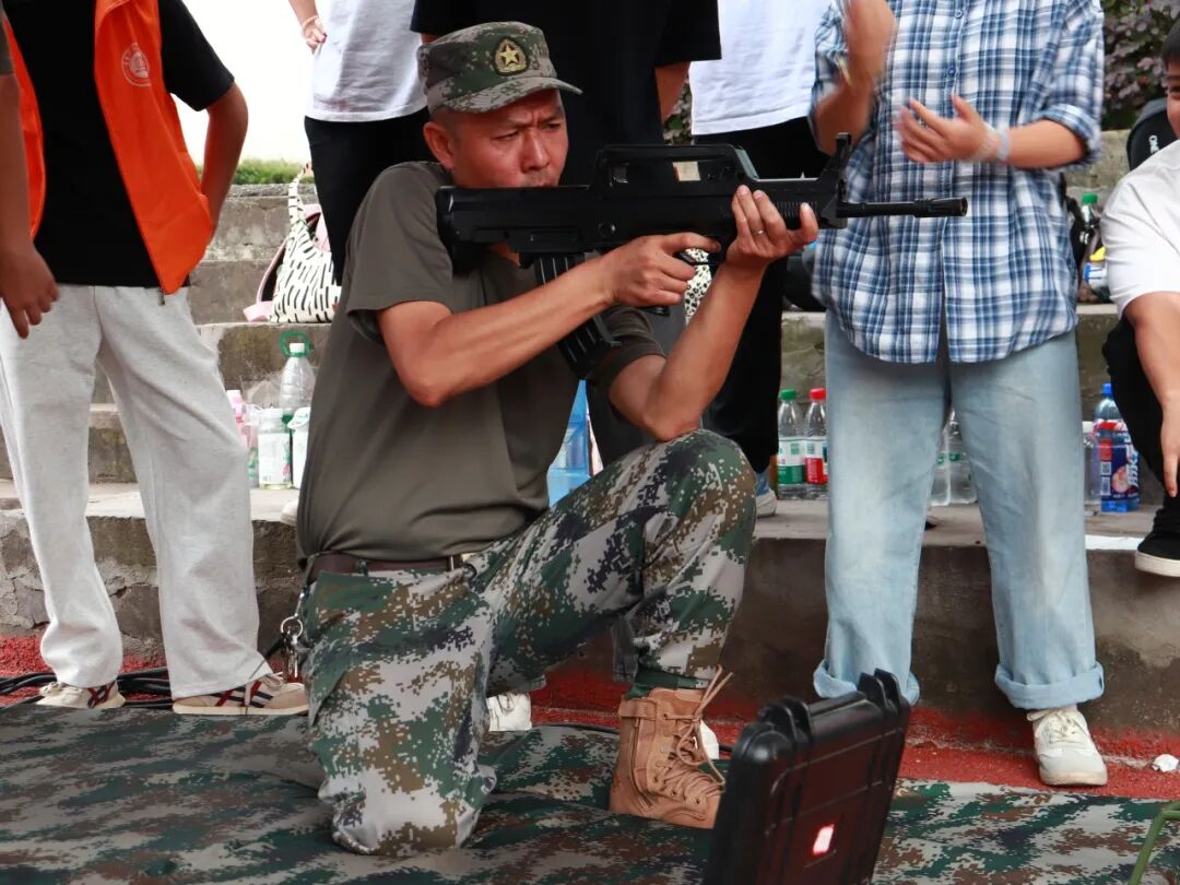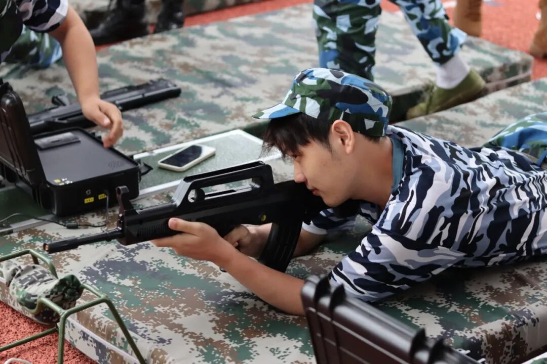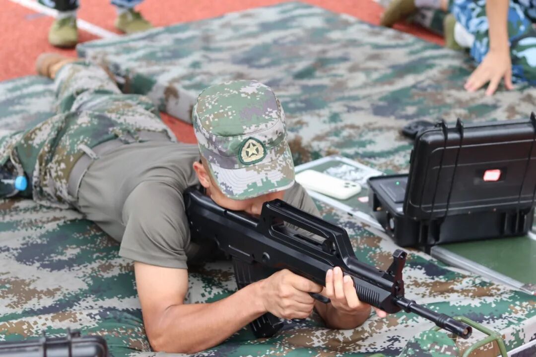模拟射击科目如期开展,新生们按序排队,眼神满是期待与郑重。在教官细致指导下,他们逐一握起 95 式自动步枪,从规范持枪姿势、掌握瞄准要领,到协调呼吸与动作,每一步都专注揣摩。扣下扳机的瞬间,眼神骤然锐利,在沉浸式体验中触摸枪械质感,深刻感悟军人的责任与担当,心中热血愈发滚烫。