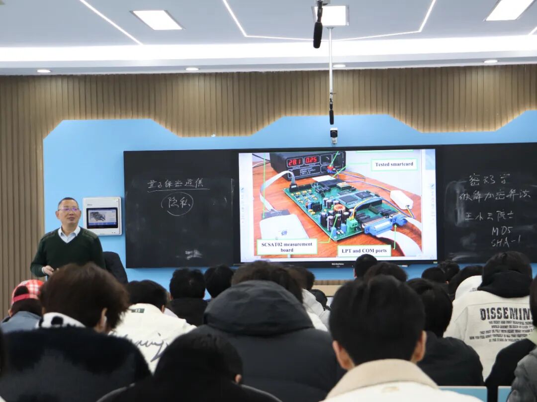 讲座中,姚剑波教授围绕主题系统讲解。他指出,侧信道攻击与传统攻击不同,不针对密码算法的理论弱点,而是捕捉密码设备运行时产生的能量、电磁、缓存及故障输出等物理泄露信息,通过分析密钥相关特征点恢复密钥,对密码系统安全构成严重威胁。