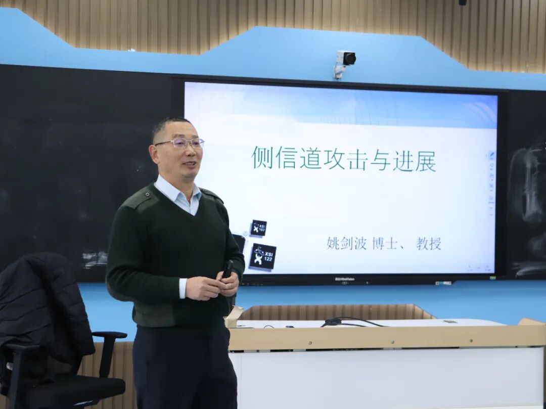 为提升学生对信息安全领域前沿技术的认知,筑牢密码系统安全防护意识,12月19日,人工智能与大数据学院在理工楼505教室举办“侧信道攻击与进展”专题讲座。姚剑波教授担任主讲人,本次讲座由大数据教研室主任肖永报主持。