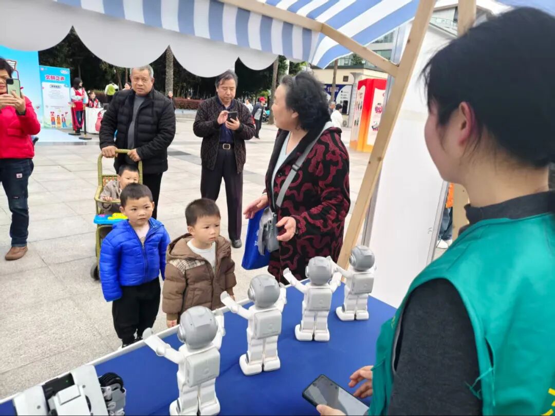 活动现场,志愿者们化身“科技讲解员”,以饱满热情和亲和态度,引导市民与师生有序参观体验。大家立足人工智能、大数据专业特长,摒弃晦涩术语,用通俗易懂的语言拆解专业知识,拉近大众与前沿科技的距离。在核心机器人展示区,灵活灵动的机械臂表演、趣味沉浸式互动体验,吸引大批群众驻足观看,有效激发了大家的科技探索兴趣。志愿者们全程耐心答疑、贴心服务,全力保障科普活动有序高效推进。