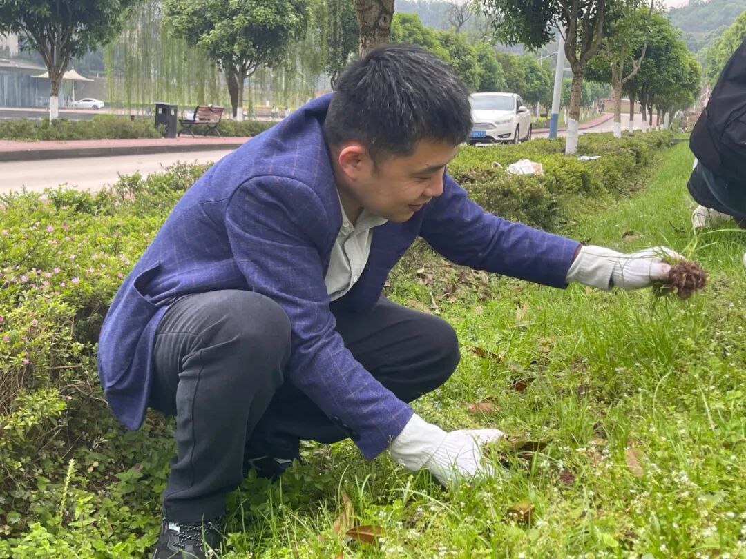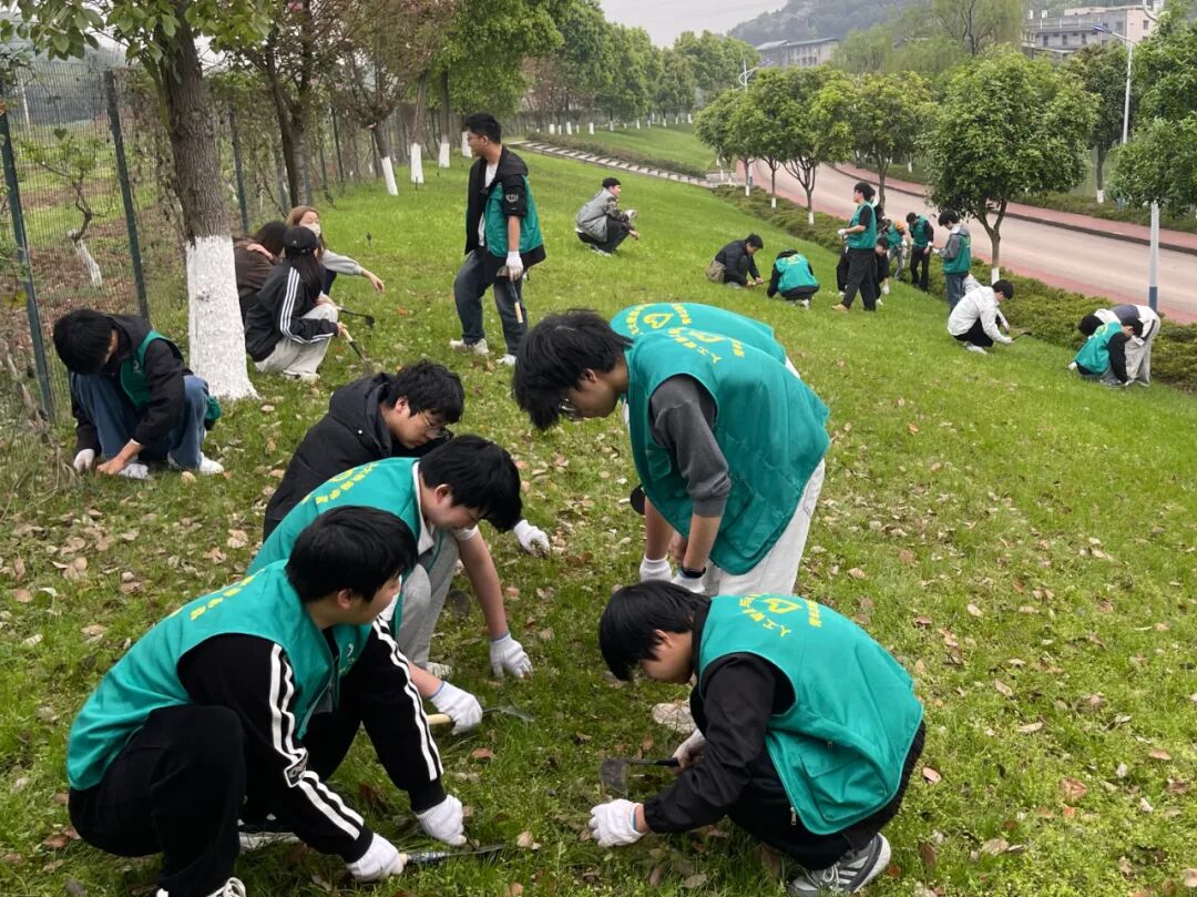 活动过程中,师生协同联动,展现出高度的工作热忱。在月亮湖草坪区域,志愿者队伍通过人工拔除与杂草清理相结合的方式,系统开展杂草清除作业。老师们现场指导,规范操作流程,确保安全的同时高效作业。
