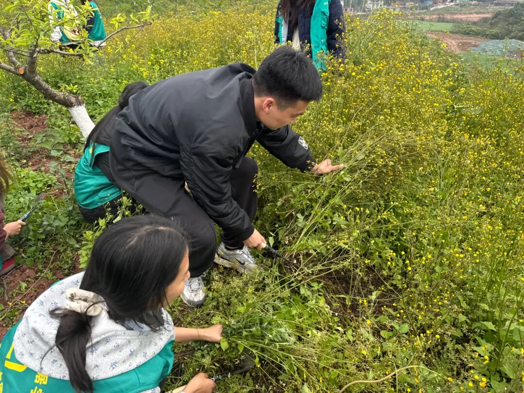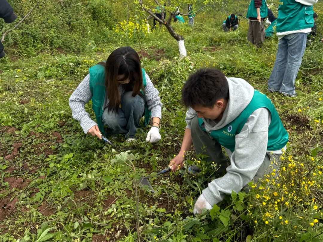 在花果山片区,大家分工协作、密切配合,手持工具认真清理杂草枯枝与各类垃圾,细致清扫卫生死角,以实际行动为植被减负、为校园添绿,用劳动守护绿水青山,践行生态文明理念。