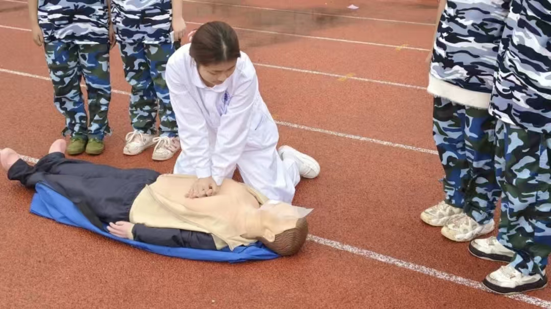 护理学子授急救,迷彩青春学守护——健康与教育学院2025级新生军训进行时(八)